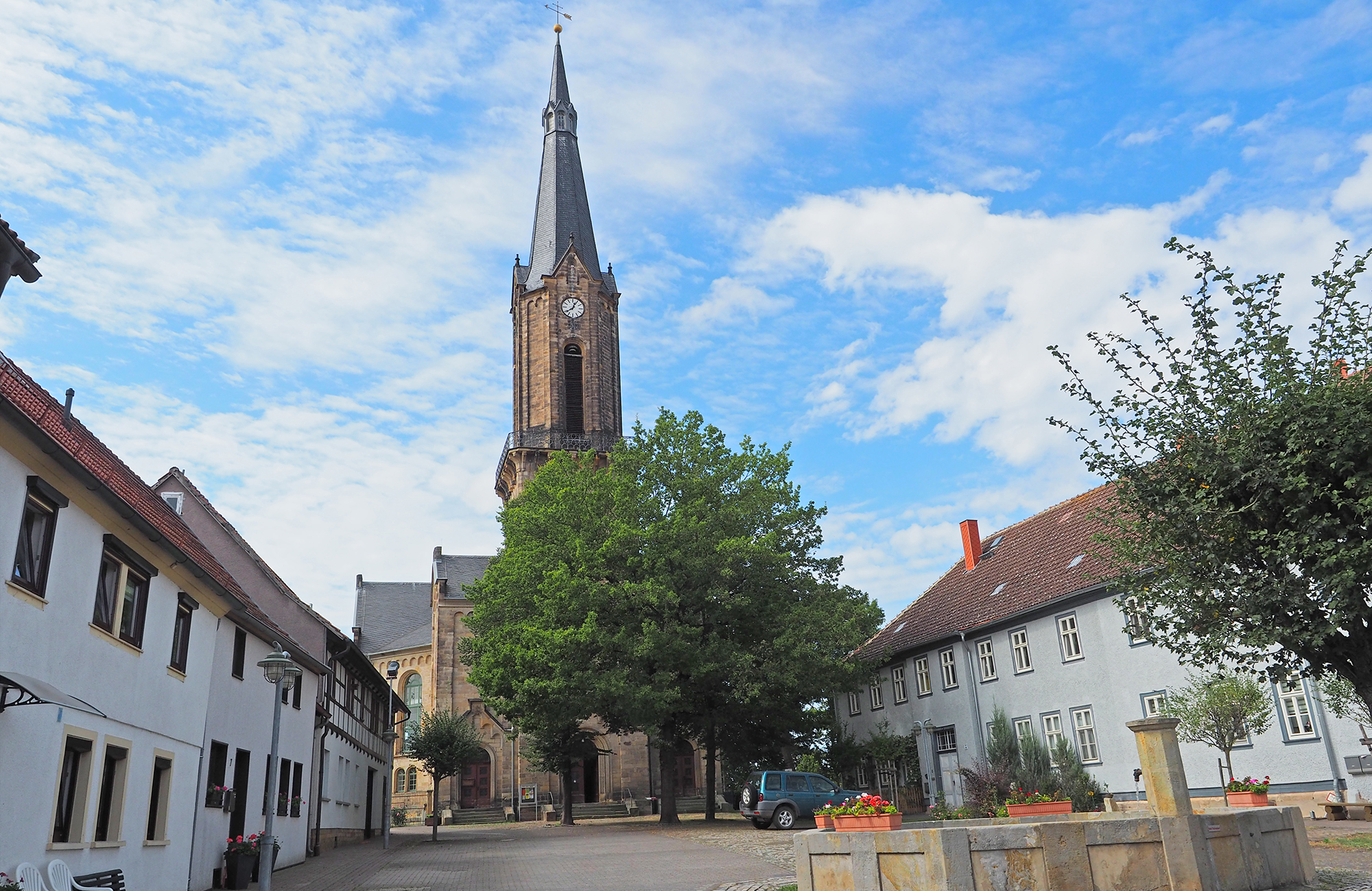 Der Blick zur Sankt Viti Kirche öffnet ein Fenster in die Jahrhunderte. Bereits im 8. Jahrhundert sollen hier erste Grundsteine gelegt worden sein – Bonifatius soll seinen Segen hinterlassen haben. Im Mittelalter wurde sie zu einer wichtigen Pfarrkirche, bewahrt eine Reliquie des Veit und schenkt dem Ort seinen Namen. Die St. Viti Kirche ist ein beeindruckender Zentralbau, Thüringens letzter großer Dorfbau aus dem 10. Jahrhundert, der 1843 auf einem achteckigen Grundriss geweiht wurde. Mit einem Kirchturm, der 68 Meter in den Himmel ragt, und einem Altarfenster, das Bonifatius, Luther und den Grafen von Gleichen in Szene setzt, erzählt sie von Glauben, Mut und Gemeinschaft.