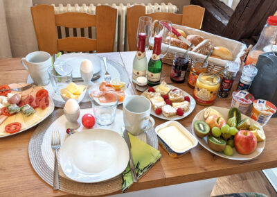 - Säfte, Müsli, Wurst, Käse, Obst und Joghurt