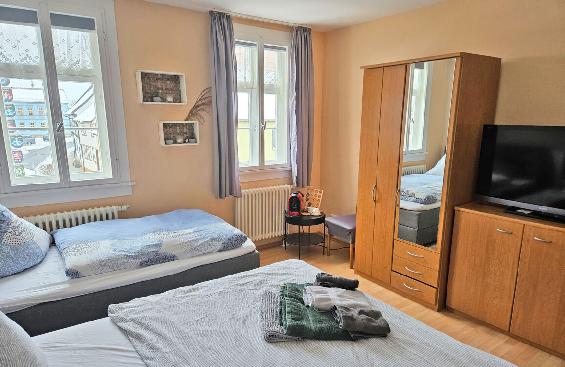 Im Quartier befinden sich sieben schöne Zimmer mit separatem Aufenthaltsraum und kleiner Küche. Alle Zimmer sind sehr liebevoll eingerichtet und stehen in thematischer Verbindung zur Umgebung. Bei uns in der Pension Goldener Löwe schlafen Sie zwischen drei weltbekannten Burgen und reichhaltiger Geschichte.
