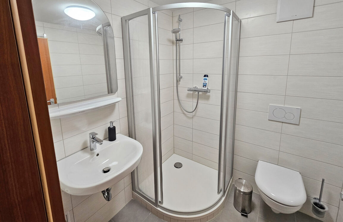 - Bad mit Dusche, Toilette, Waschbecken, Föhn